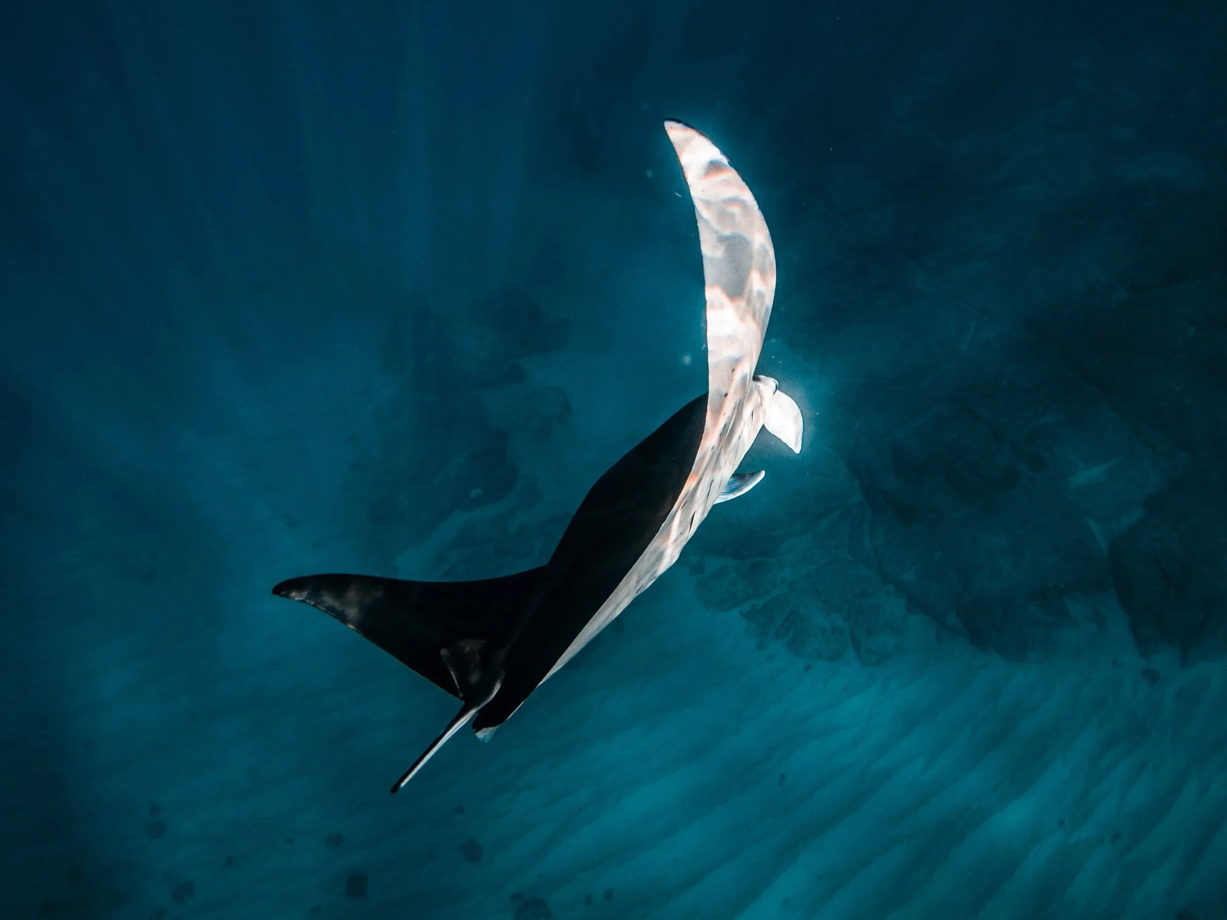 Just beyond the rim lies a dramatic drop-off known locally as the Molokini backside, where the seafloor plunges thousands of feet into the deep Pacific. That deep water occasionally brings unexpected visitors close to the crater.