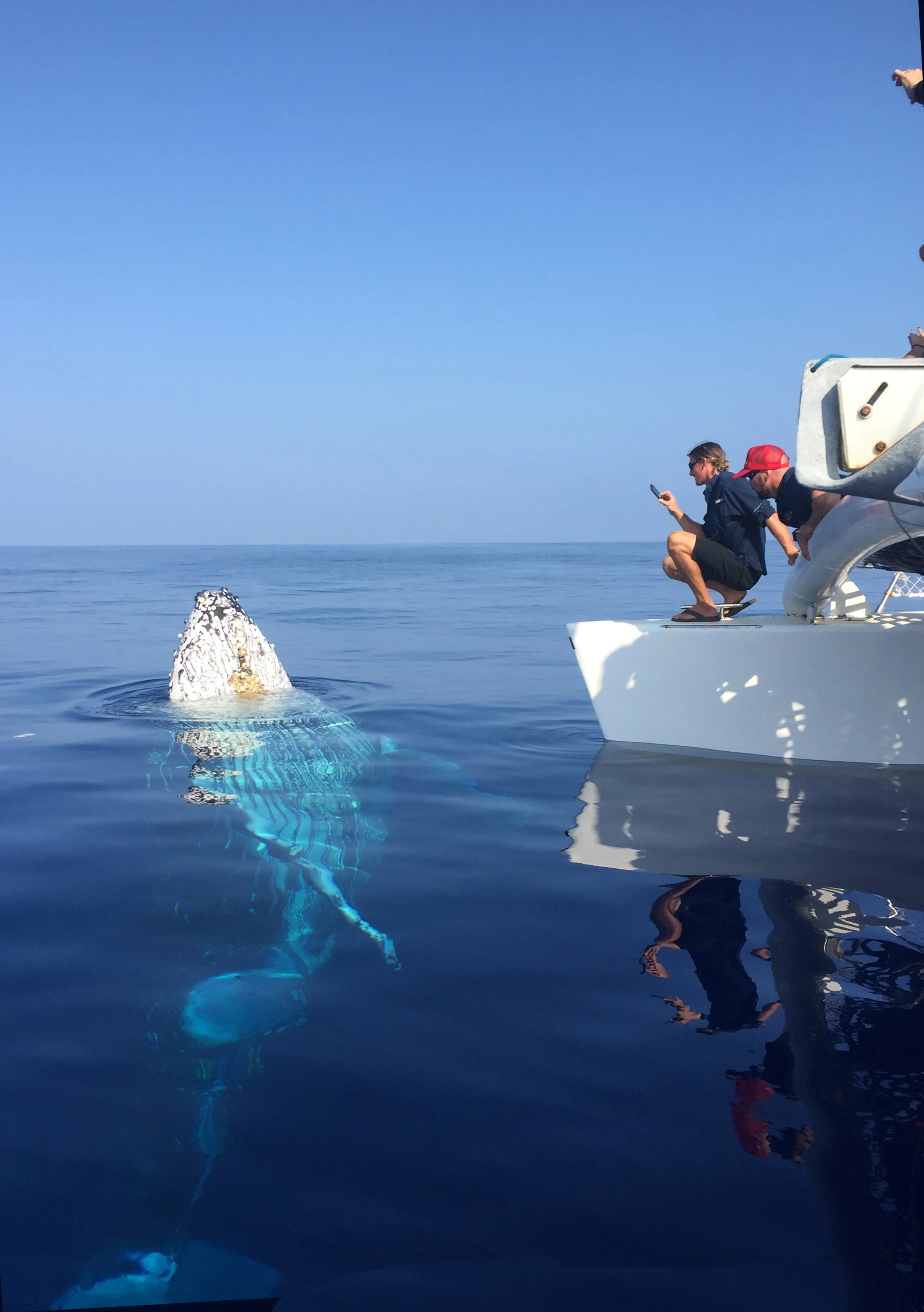 @sailtrilogy These are what we call friendly whales 🐋 This humpback approached the boat out of curiosity, lifting its head above the surface in a behavior known as a spy hop. Whales do this to look around, and it’s something we sometimes see when they choose to interact on their own terms. After the spy hop, the whale settles just below the surface in a vertical position, offering a rare view of this calm, curious behavior beneath the water. Trilogy adheres to @noaa DOLPHIN SMART Guidelines: All photos and videos were taken while viewing from a responsible distance. The whales in these photos and videos approached the boat while the engines were in neutral or off. #sailtrilogy #humpbackwhales #spyhop #whales #maui ♬ original sound - sailtrilogy